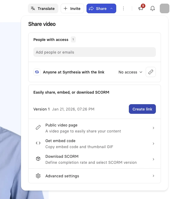 Step 8: Embed your video or export via SCORM to your LMS