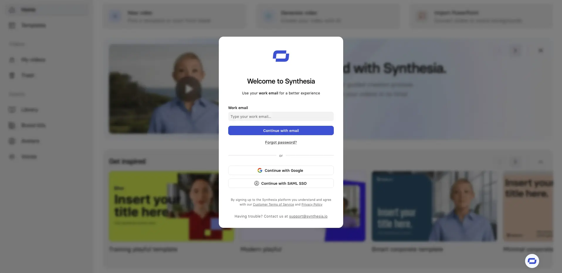 Step 1: Log in to Synthesia