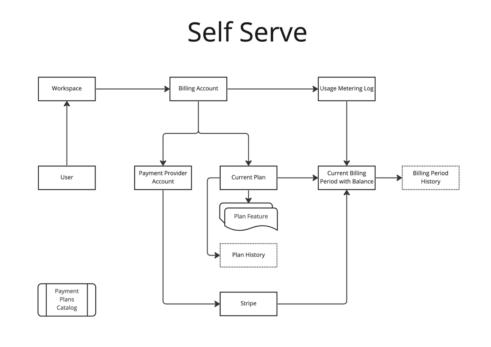 The core structure of our billing system was a loop that connected feature purchases to billing periods and usage tracking. The payment plan defines what users have access to; the billing period reflects the current balance; and we track usage in real-time to gate feature access. No more honor system.