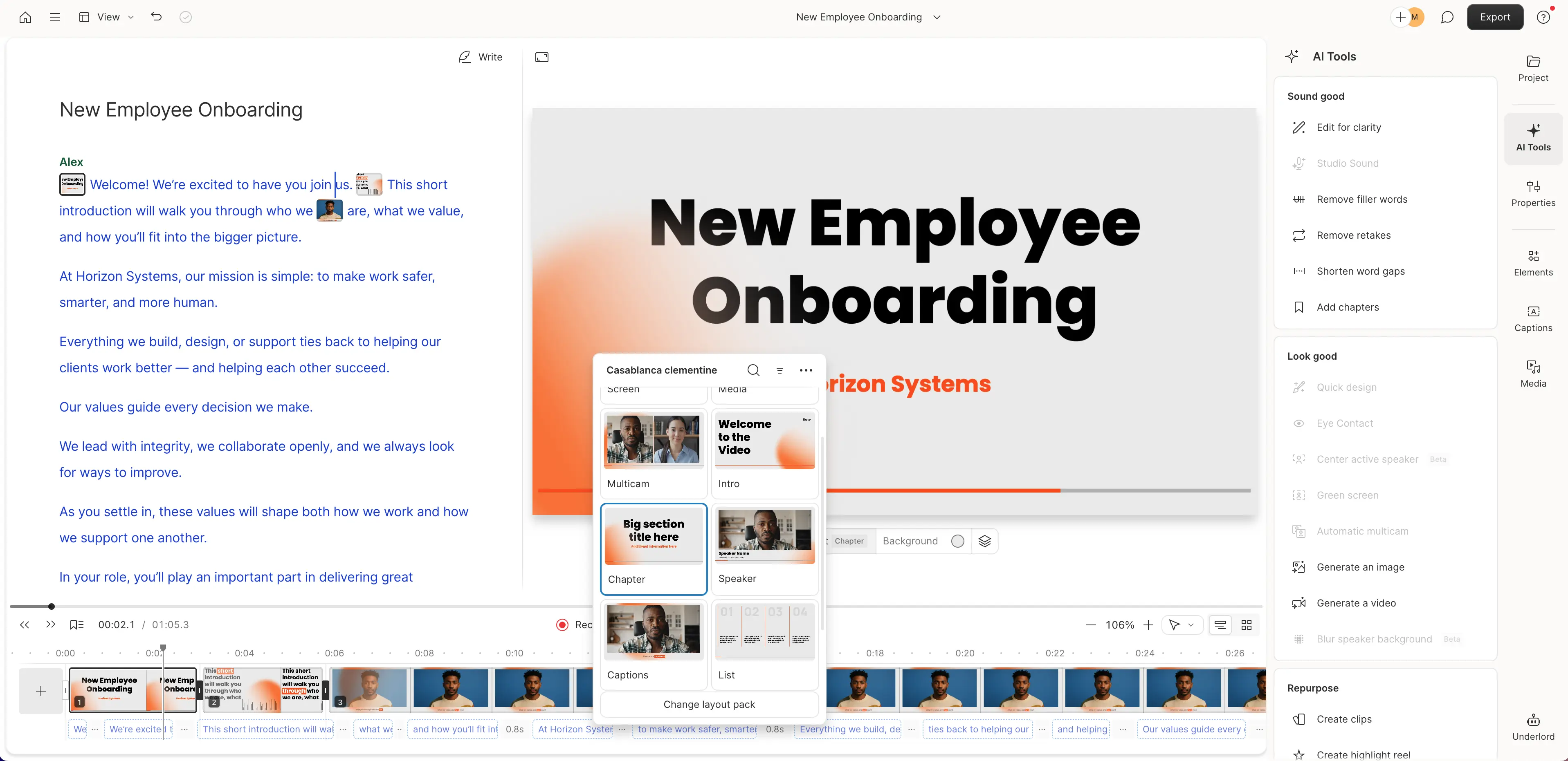 Onboarding videos typically require frequent updates and are one of the most common use cases for training videos, so I think this makes an ideal test case.