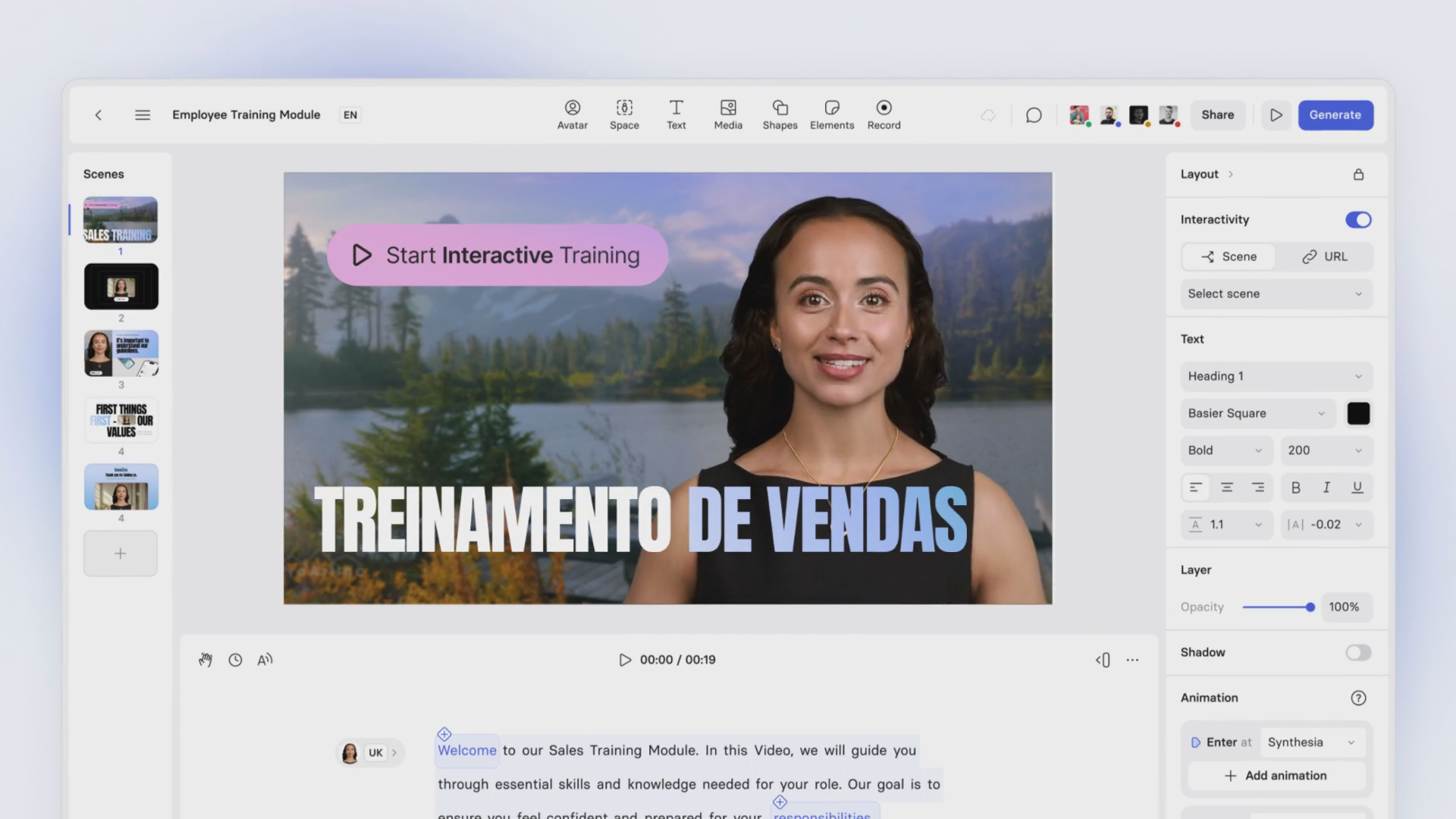 Treine seus representantes de vendas com apresentadores envolventes de IA
