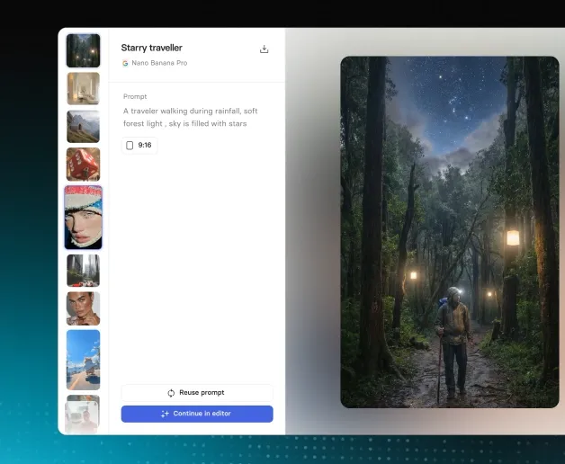 Tweak your prompt, explore variations, and generate multiple options until it looks right.