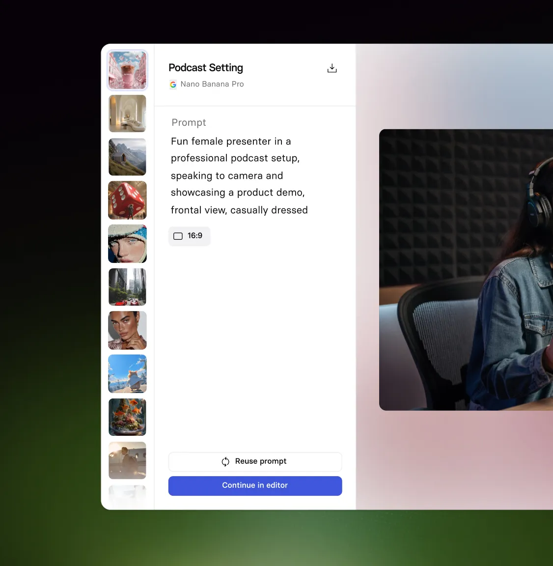 - Generate multiple assets from a single prompt to compare and choose the best fit